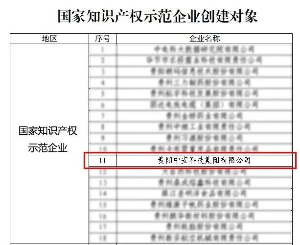 “国家知识产权示范企业”是由国家知识产权局组织评定,授予在知识产权创造、运用、保护和管理方面表现卓越的企业的重要荣誉,代表了企业在知识产权领域相关工作已取得一定成效。此次颁奖,贵州共18家企业荣获此荣誉,中安位列其中,标志着中安在知识产权综合能力与发展水平已跻身国家级示范行列。